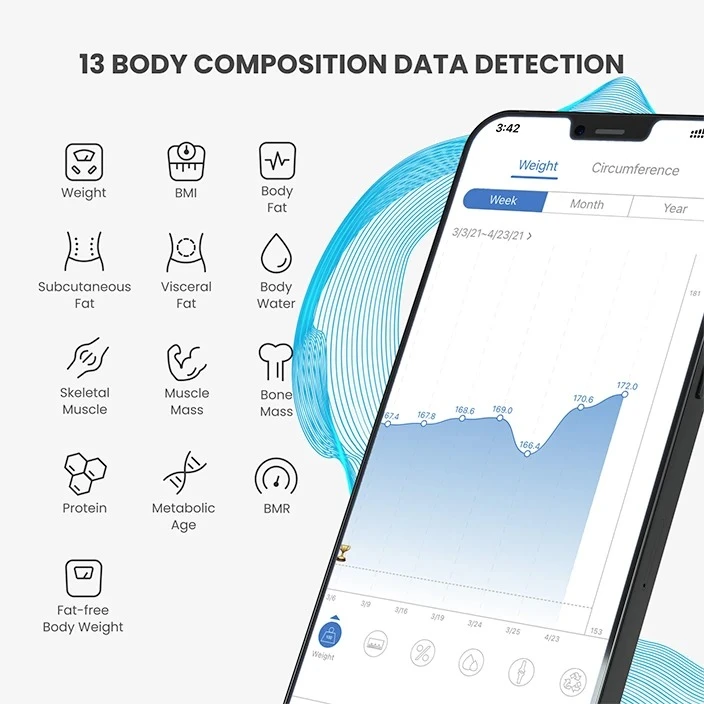 ترازو هوشمند رنفو مدل ES-26BB یک ابزار پیشرفته برای اندازهگیری و تحلیل ترکیب بدن است که بهویژه برای افرادی که به دنبال پایش دقیق سلامت و تناسباندام خود هستند، طراحی شده است. این ترازو با بهرهگیری از فناوریهای نوین، اطلاعات جامعی از وضعیت بدنی کاربران ارائه میدهد.